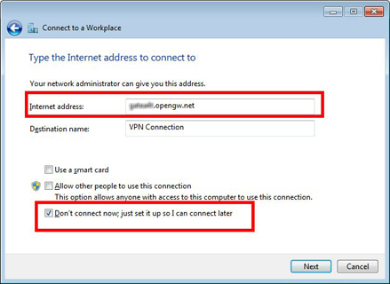Select "Use my Internet connection (VPN)"